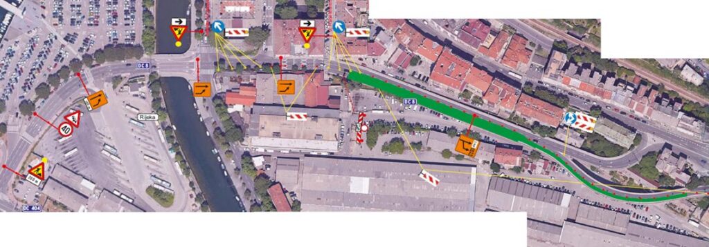 ·         na odvojku vijadukta Piramida u smjeru Šetališta XIII. divizije prometovat će se lijevom prometnom trakom dok će desna prometna traka biti zatvorena za sva vozila.